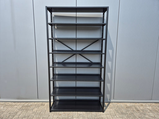 Alle gegevens bekijkenGebruikte stelling, erg netjes. Merk: SchaferDraagvermogen per bord: 100kgBreedte bord: 97cm (inclusief staander 100cm hard op hard) Aanbouwstellin...